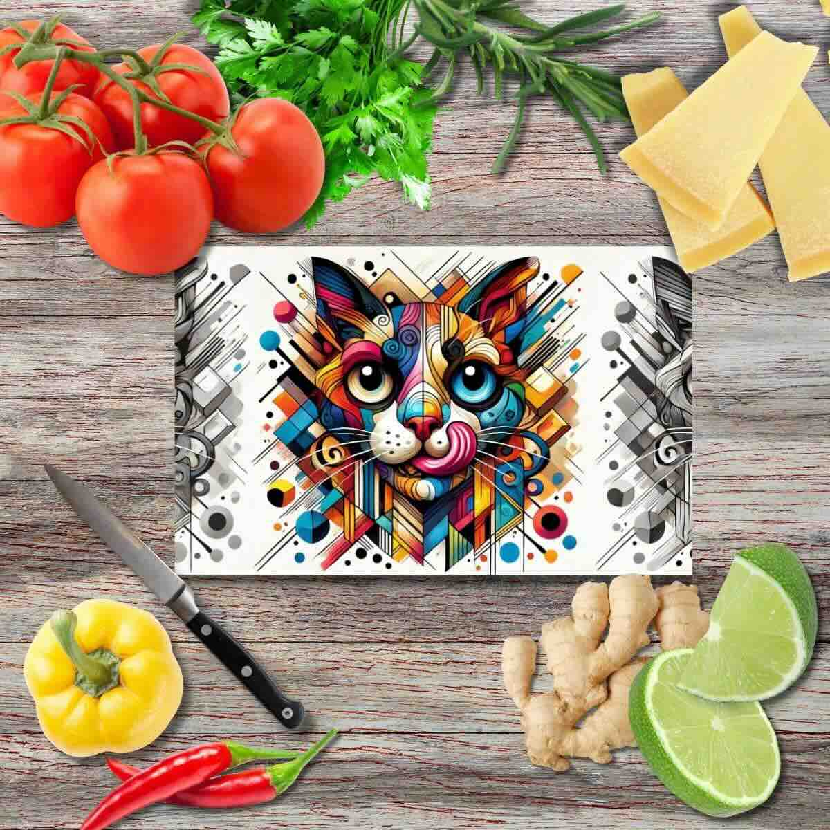 Exklusives Schneidebrett aus Glas mit hochwertigem Fine Art Print. Hitzebeständig, rutschfest und pflegeleicht – ein praktisches und künstlerisches Highlight für jede Küche.