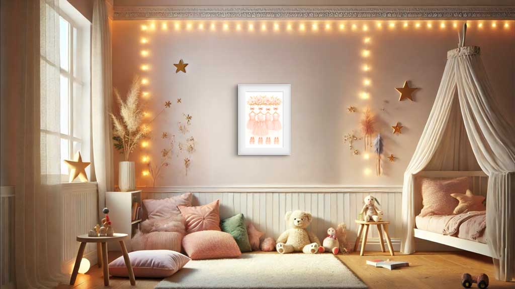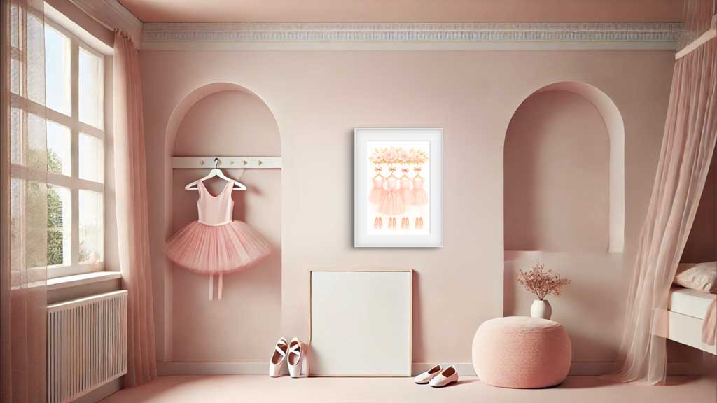 Diese Illustration ist mehr als nur ein hübsches Bild: Sie erinnert an das erste Balletttraining, die Aufregung vor einem Auftritt oder das gemeinsame Ankleiden mit der besten Freundin oder Schwester. Als hochwertiger Fine Art Print ist sie ein bleibendes Kunstwerk fürs Kinderzimmer – eine Erinnerung, die von Generation zu Generation weitergegeben werden kann.