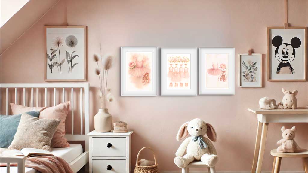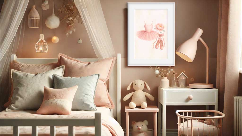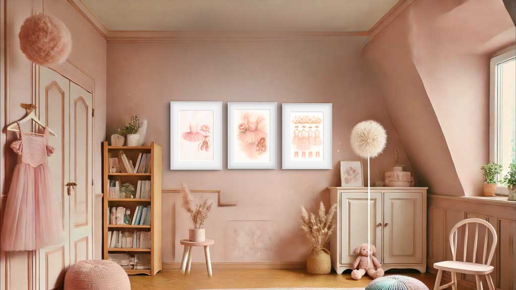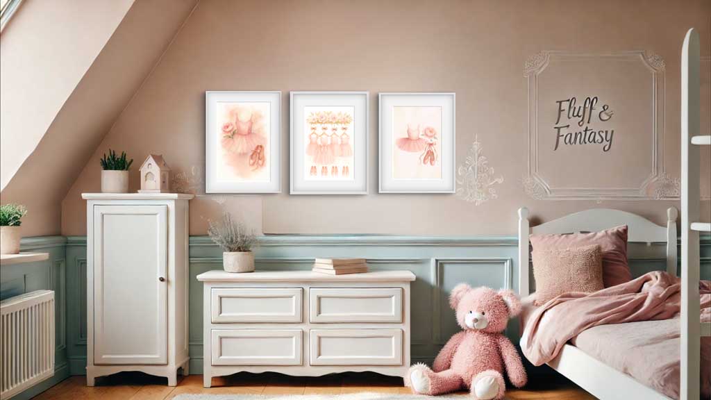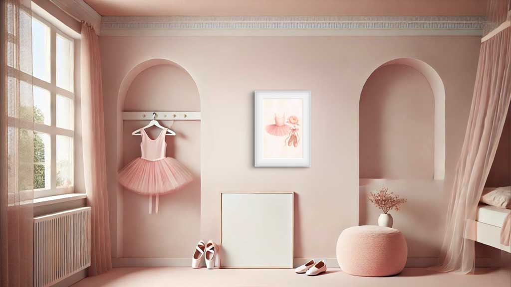 Die Komposition wirkt wie eine Einladung zum Träumen und Tanzen – ein Sinnbild für Anmut, Hoffnung und kindliche Vorstellungskraft. Es ist nicht nur Dekoration, sondern ein künstlerisches Symbol für jene ersten Momente, in denen ein Kind beginnt, sich auszudrücken.