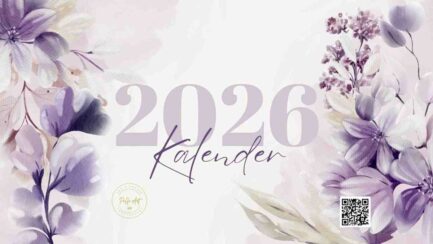 Digitaler, herunterladbarer Kalender für 2026 mit zarten lila Aquarellblumen. Ein eleganter Wandkalender zum Ausdrucken, der das ganze Jahr über Ruhe und Harmonie bringt.