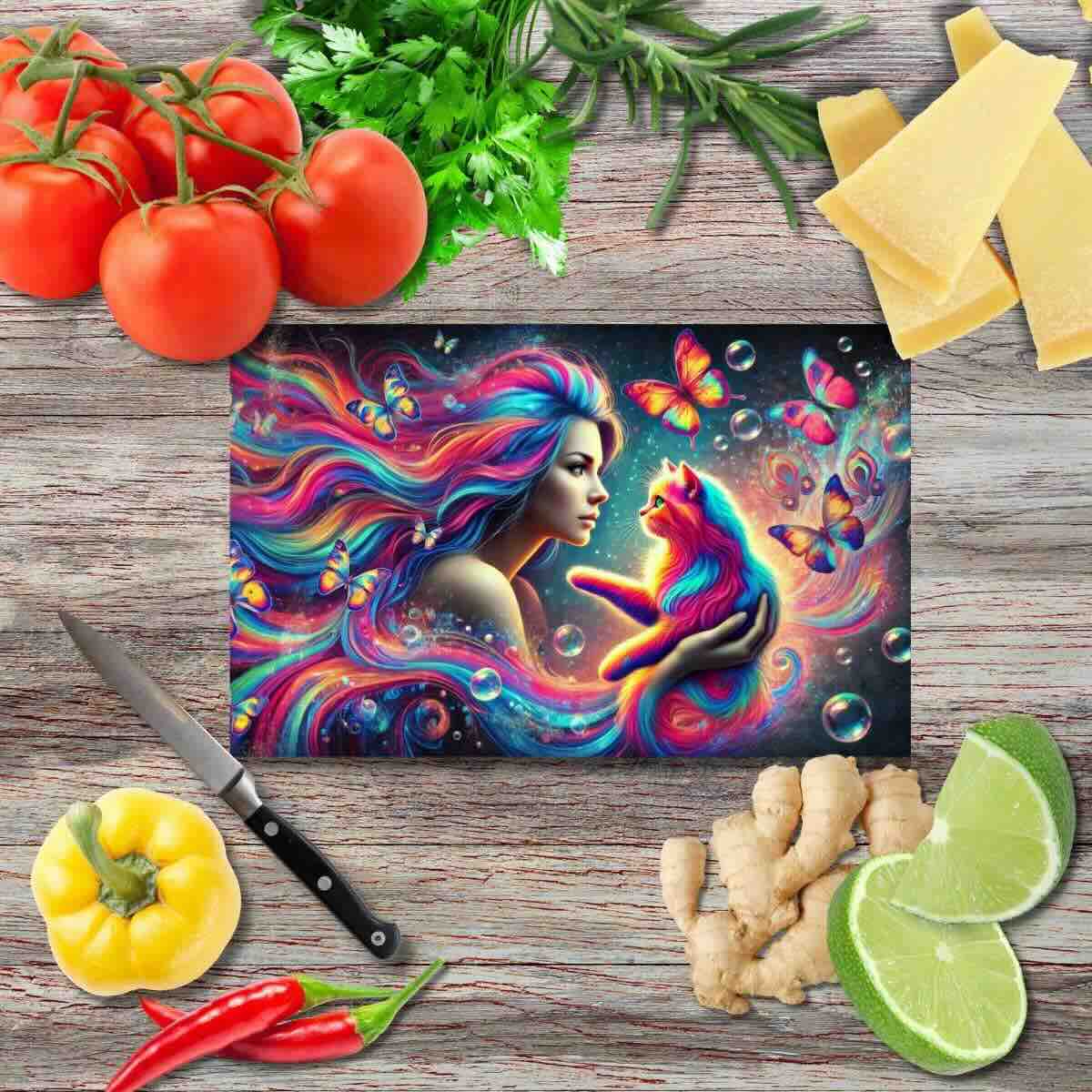 Exklusives Schneidebrett aus Glas mit hochwertigem Fine Art Print. Hitzebeständig, rutschfest und pflegeleicht – ein praktisches und künstlerisches Highlight für jede Küche.